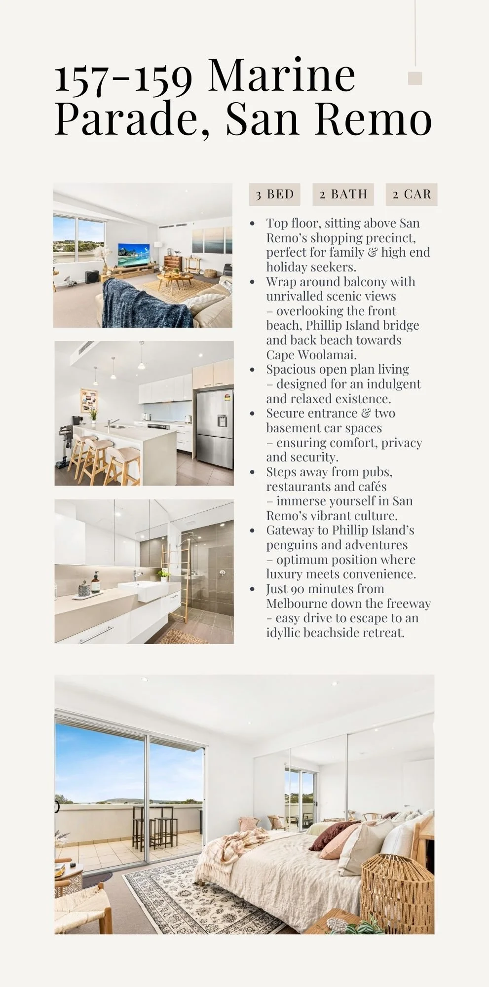 I designed a DL-size flyer for a beachfront penthouse Airbnb rental, capturing it’s luxury and exclusivity. The client needed a visually compelling design to advertise their property and sell the dream of a high-end coastal getaway. I incorporated elegant typography, high-quality imagery, and a refined layout highlighting the apartment’s premium features and stunning ocean views. The result was a sophisticated and inviting flyer that effectively showcased the property’s appeal to potential guests.